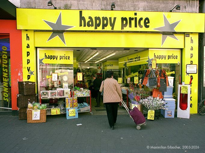 Ob nun durch das bloße Tragen eines Happy T-Shirts Glück empfunden wird oder die Person darin ihr Glück kommuniziert, ich konnte es der Trägerin auf alle Fälle in einem Brühler Biergarten ohne Gegenleistung abschwatzen, oder der Fordkunde in Bangalore Glück empfindet, wenn er seine Rechnung präsentiert bekommt und über ihm unzählige Happy Pockets im Luftzug der Klimaanlage flattern, ist subjektiv.