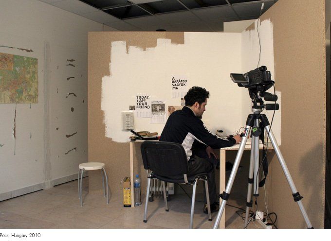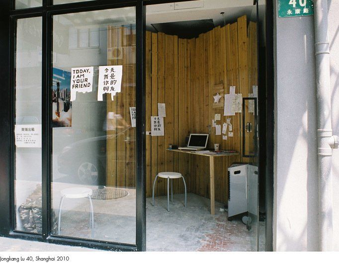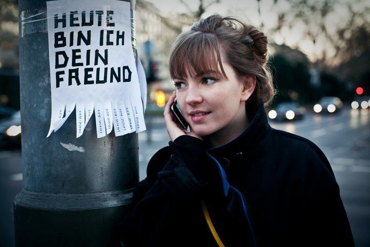 The anonymous promise "Today I am your friend" and a phone number for tearing the only information. The friendship offer is copied in English and the local language on A4 paper. An empty shop in the city center will be transformed into a temporary call center. The promise is limited to one week. Previous Cities: Munich (2009), Pécs / Hungary (2010), Shanghai (2010), Cologne (2011). On average, 20 text messages and 15 calls per day were received. All situations I drop in after taking over requests are all recorded on video.