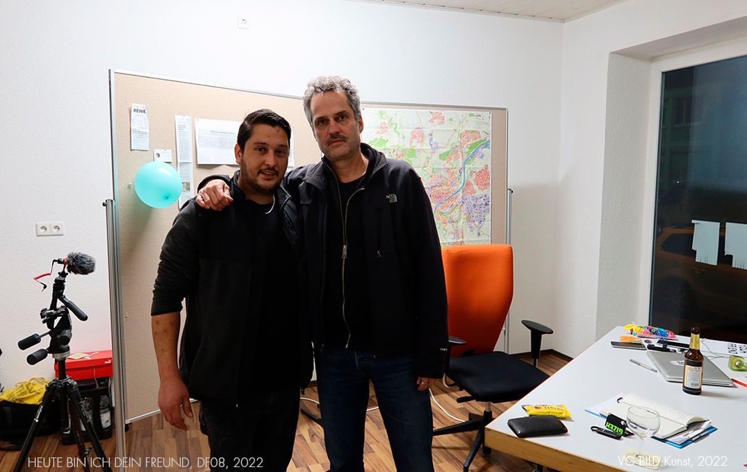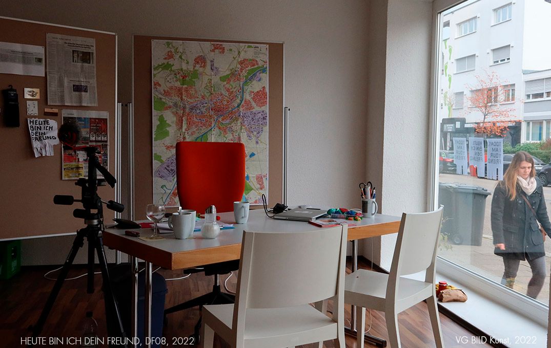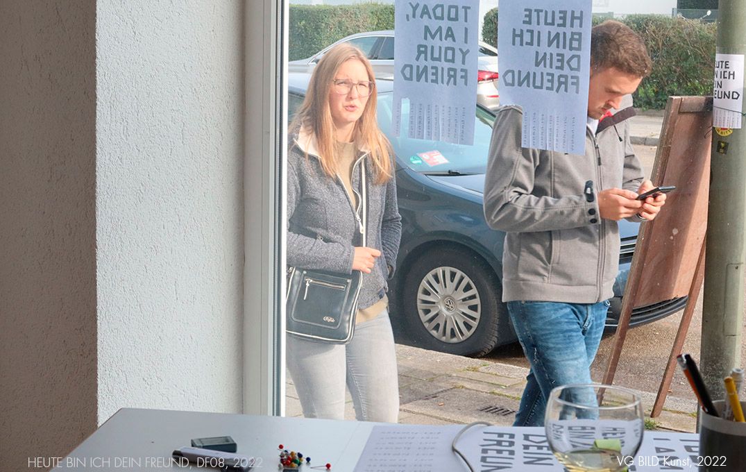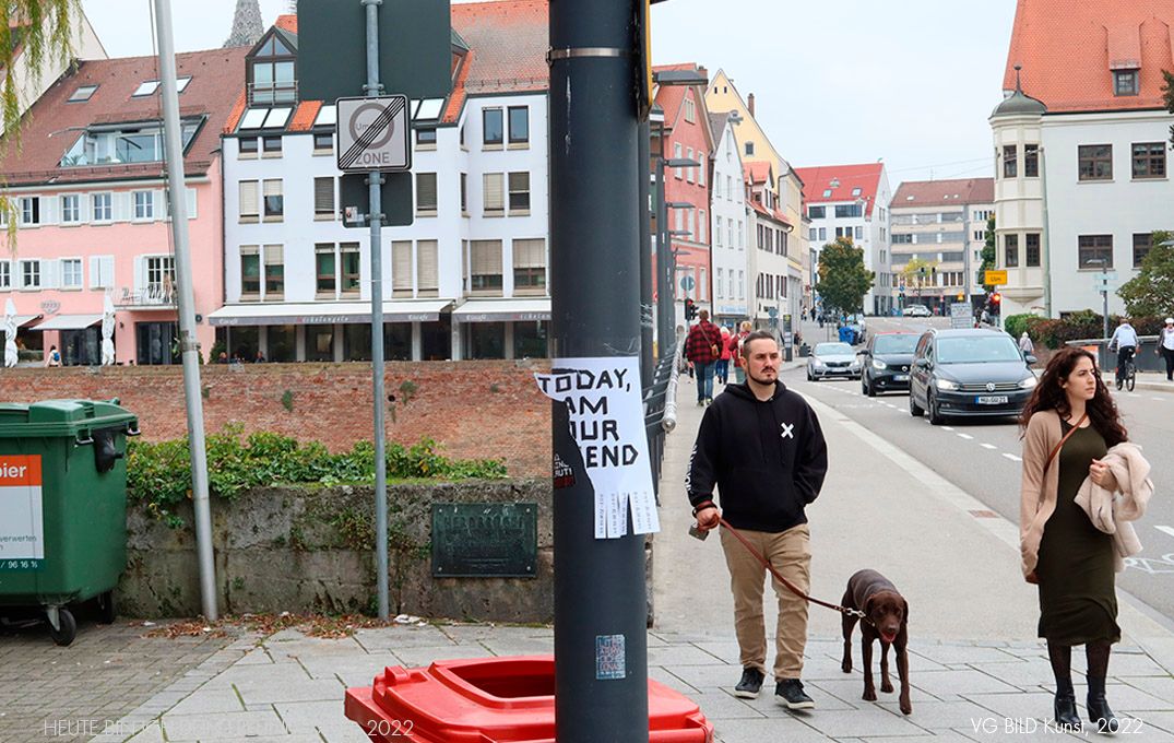 „Dein Freund in Neu-Ulm“ – unter diesem Titel bietet sich der Künstler Max Erbacher Anfang Oktober in Neu-Ulm als temporär buchbarer Freund an und lädt in seinem Büro oder auch bei von Bürgerinnen und Bürgern gewählten Orten zu freundschaftlichem Austausch ein. Alles, was man dafür tun muss, ist den Künstler anzurufen – seine Telefonnummer findet sich auf im Stadtraum ausgehängten Abreißzetteln. In der Neu-Ulmer Innenstadt bezieht Max Erbacher zudem ein kleines Büro. (Text: Edwin Scharff Museum, Neu-Ulm)