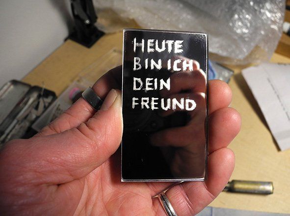 Spiegel, 80 x 45 mm, handgraviert, rückseitig signiert und nummeriert, ed.: 200