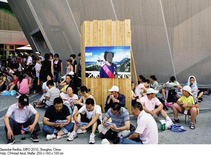As part of the culture program of the German pavilion "balance city" the installation "SAY CHEESE" could be realized on the ground of the pavilion. By the raw and rustically shape of the construction the photo wall contrasted that very geometrical form and technical architecture.