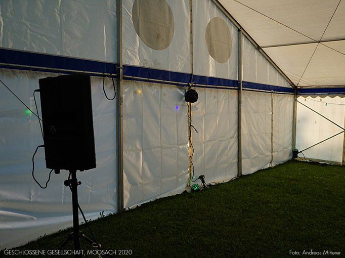 Das Zelt markiert einen Ort, der für die Kunst in Moosach exemplarisch ist. Dort stand das ehemalige Pfarrhaus, Herberge für lokale wie auch internationale Künstler wie die Gruppe „Spur”. Es begründete in den 1970er Jahren den Ruf Moosachs als Künstlerort. Die Gäste werden sich an vergangene Feste dieser Art erinnert fühlen, wenn sie die Musik hören und nach Einbruch der Dunkelheit die bunten Lichter an der Innenwand des Zeltes sehen. In diesem Moment ruft das Zelt individuelle Bilder wach und verweist im gleichen Moment auf die Zukunft, auf das Verlangen nach einer ungezwungenen Gemeinschaft, die jedem offen steht.