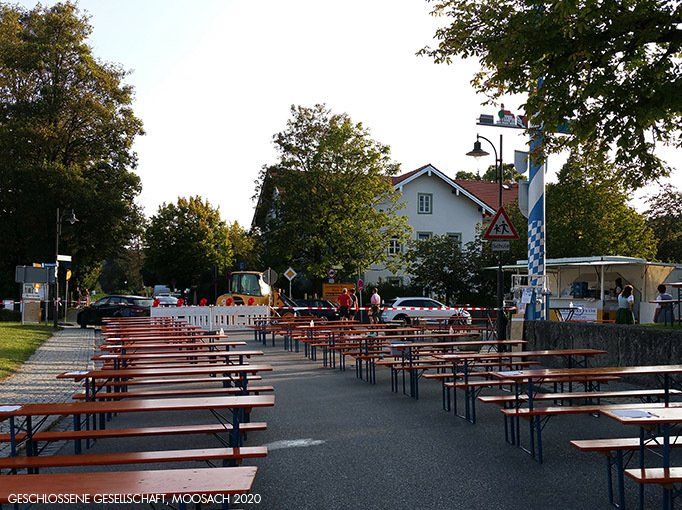 Da das Oktoberfest nicht stattfindet, eröffnet Moosach es stellvertretend. Und wie es sich für die Eröffnung einer Wiesn gehört, wird das erste Fass durch unseren Bürgermeister Michael Eisenschmid angestochen, am Maibaum. Aus dem Zelt klingt vertraute Musik herüber und nach Einbruch der Dunkelheit verzaubern bunte Lichter die Zeltwände.
