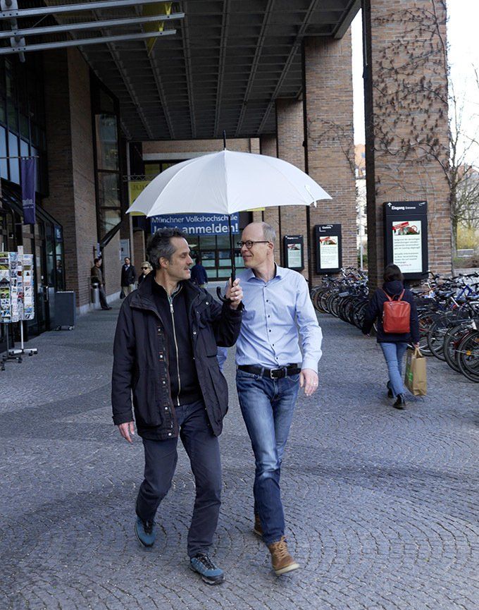 Erbacher's second contribution serves as a key to understanding the whole. On selected days during the exhibition, visitors are personally picked up from the S-Bahn station and accompanied to the main entrance of the cultural centre under the protection of an oversized umbrella. A superfluous employment support or a well-intentioned offer? With of his action, Erbacher clearly shows that here everyone - "who cares" which origin or which problems he or she brings with him or her - is not only welcome, but is also protected and valued.